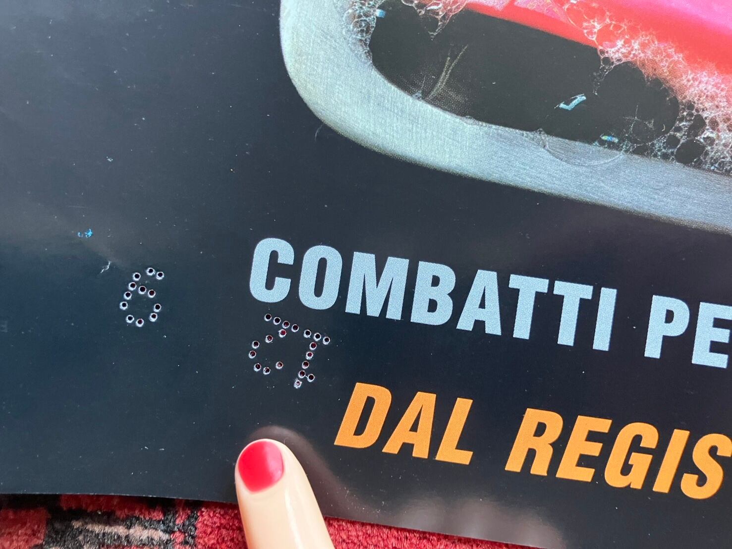 イタリアの劇場では週替わりでプログラムを組むことが多かったため、上映週を示す管理番号としてパンチングされることもあります。