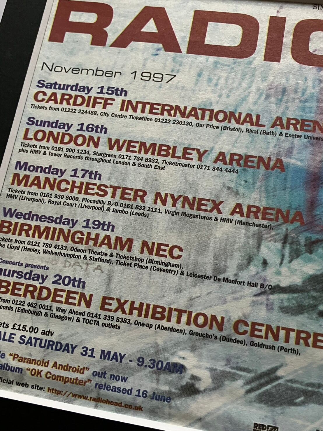 1997/Radiohead『OK Computer Tour』A4額付き
