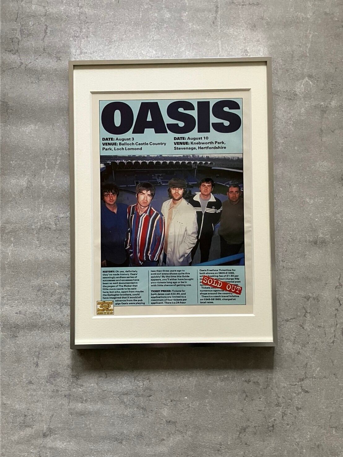 1996/OASIS/Knebworthライブ告知/A4額付き