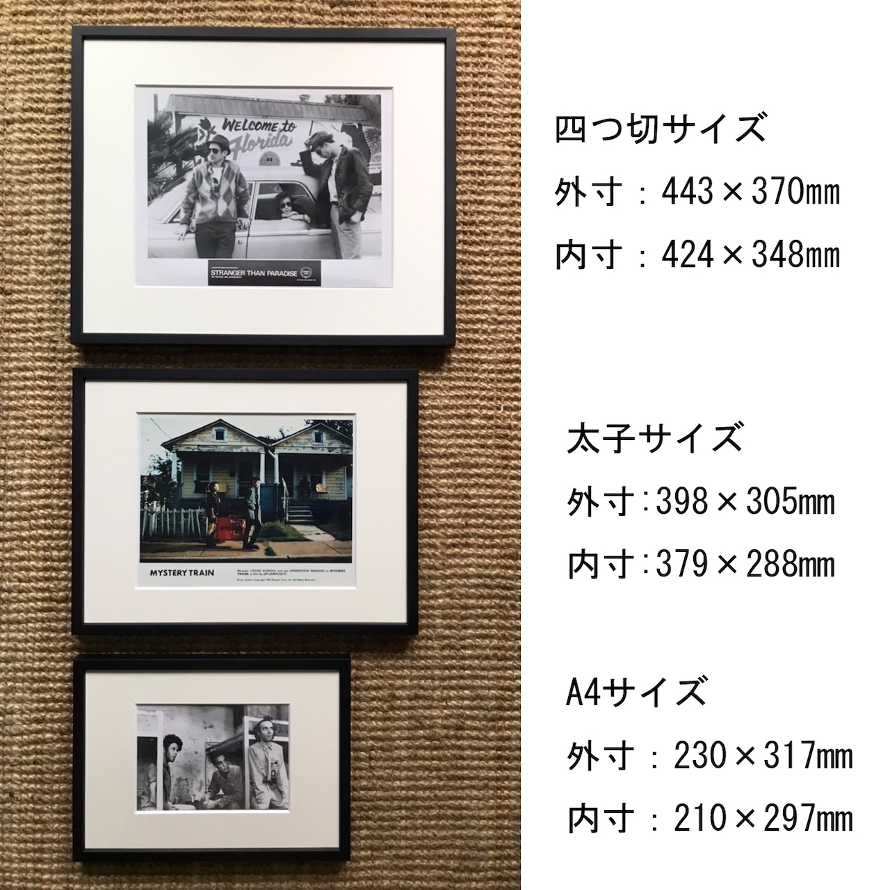 額はマットブラックに仕上げた平面木製額に2mm厚マット紙を合わせ、