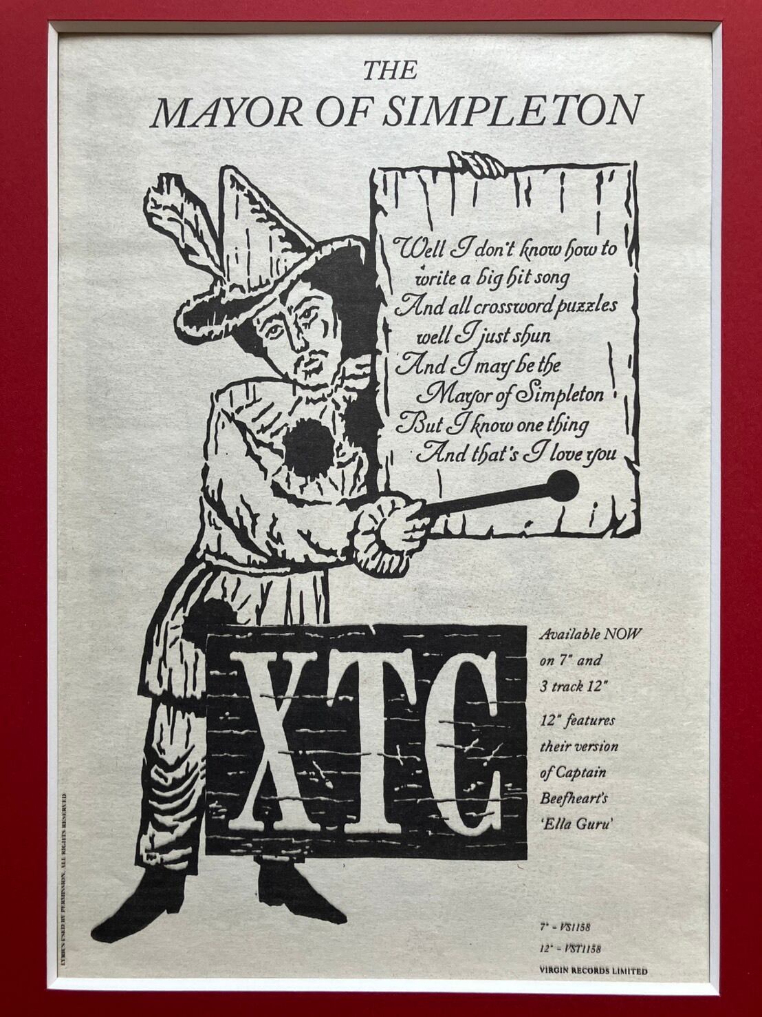 1989/XTC「The Mayor of Simpleton」 A4額付き