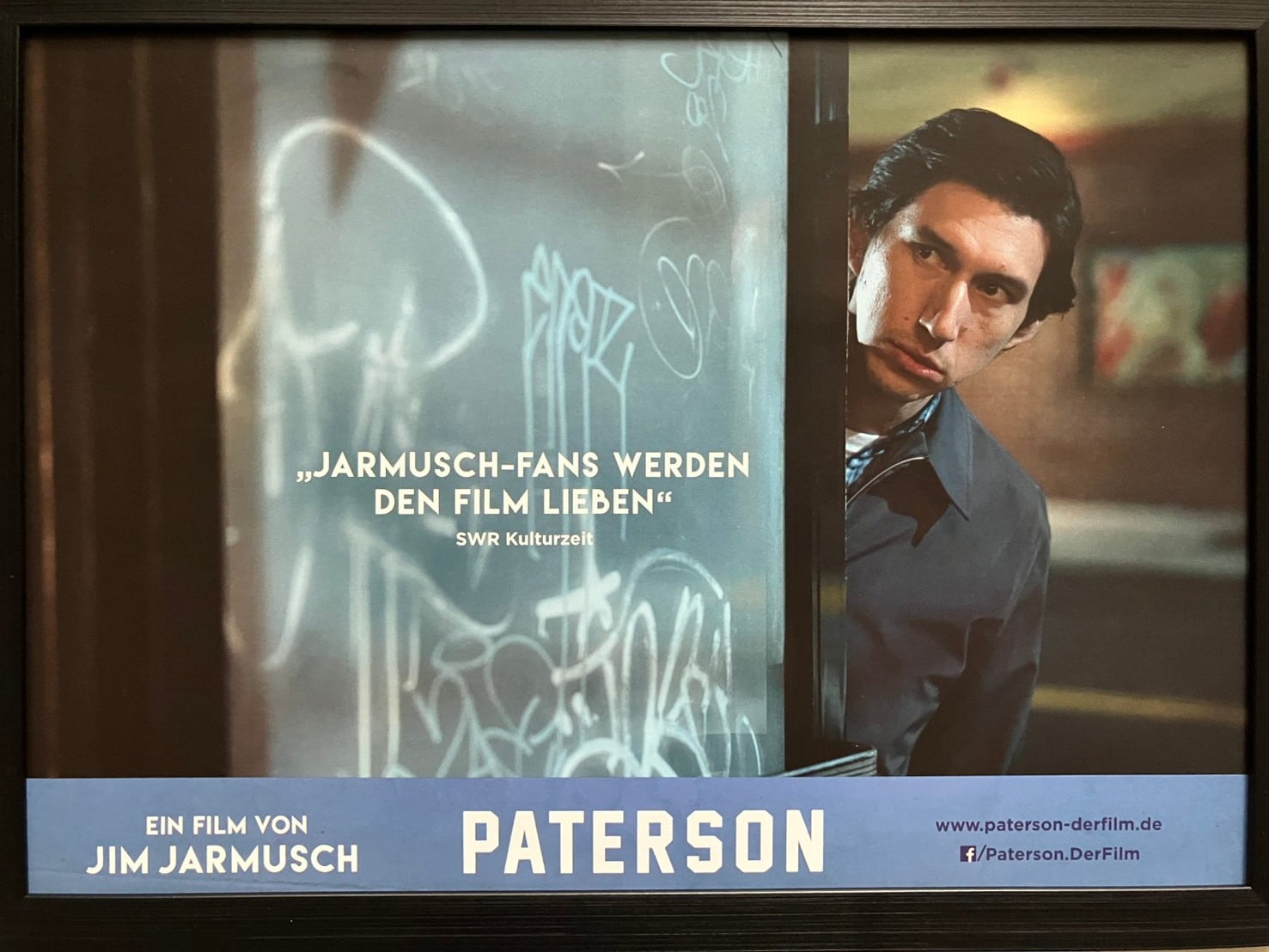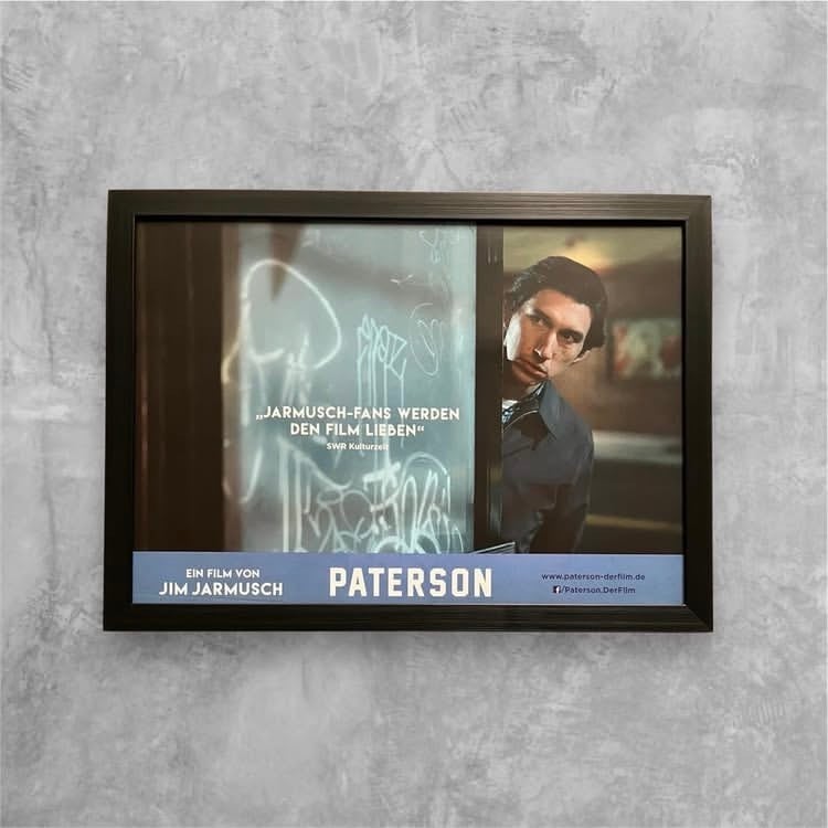 ジム・ジャームッシュ監督による映画『Paterson』のドイツ版オリジナル・ロビーカードをA4サイズ額に収めた額装品です。