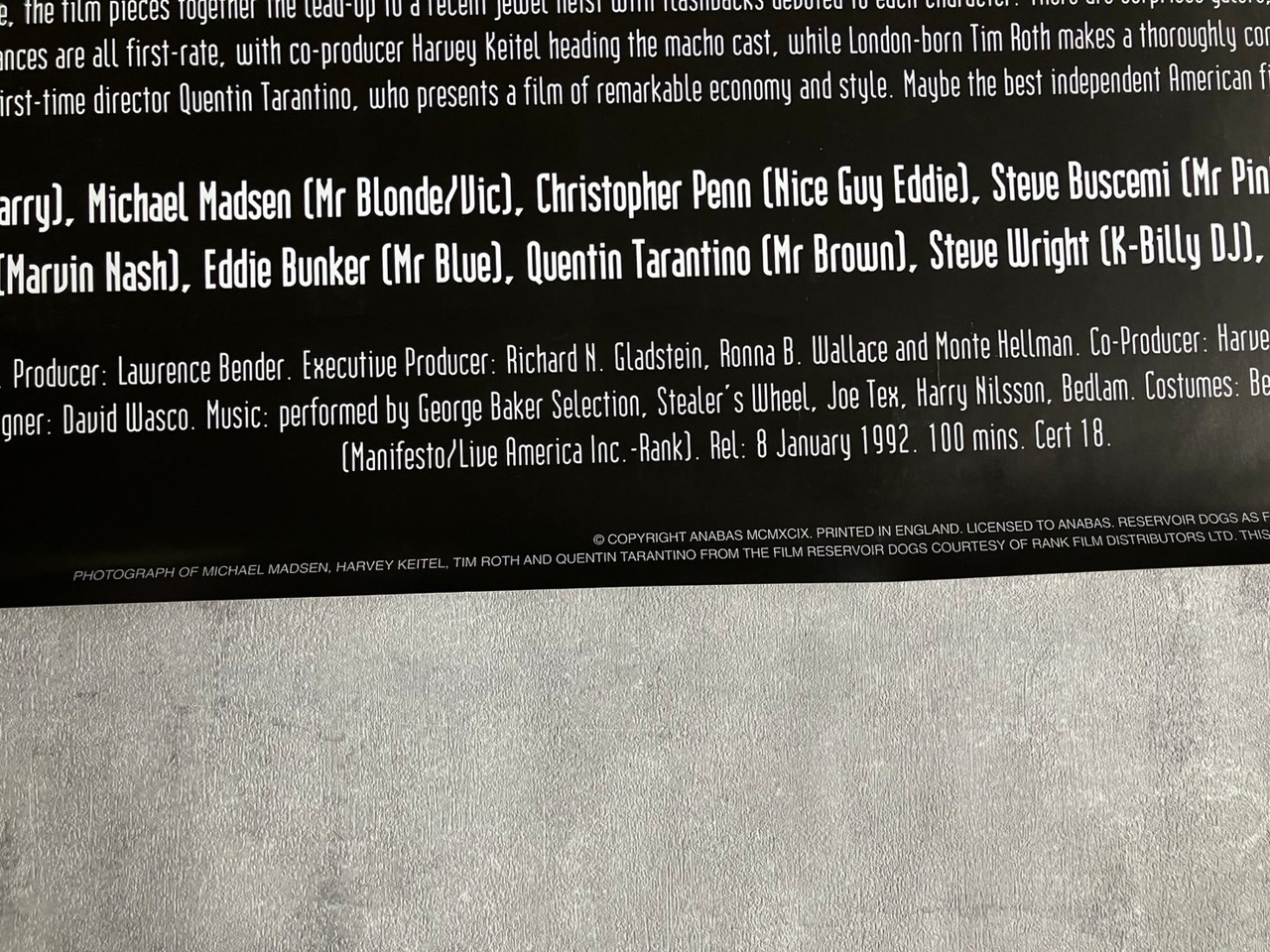 Reservoir Dogs(レザボア・ドッグス) UK Promotional Poster
