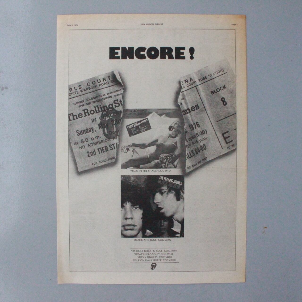 The Rolling Stonesのヨーロッパツアーチケットやアルバムの広告です。