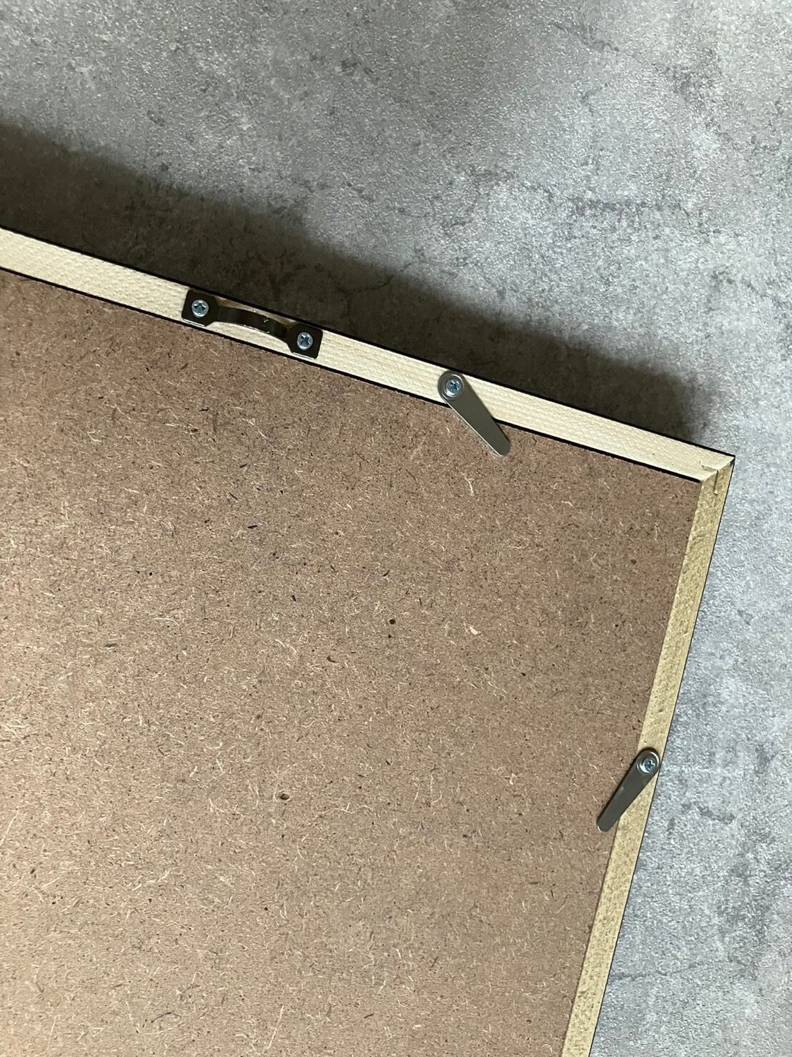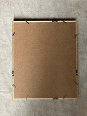 額はブラックに仕上げた平面木製額に、アイボリーの2mm厚マット紙を合わせ、